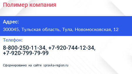 Полимер, компания по адресу 300045, Тульская область, Тула, Новомосковская, 12 в дальнейшем Организация, размещена в следующих категориях: