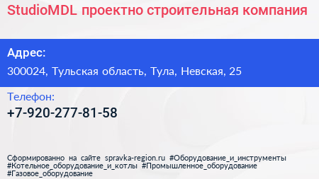 StudioMDL, проектно-строительная компания по адресу 300024, Тульская область, Тула, Невская, 25 в дальнейшем Организация, размещена в следующих категориях: