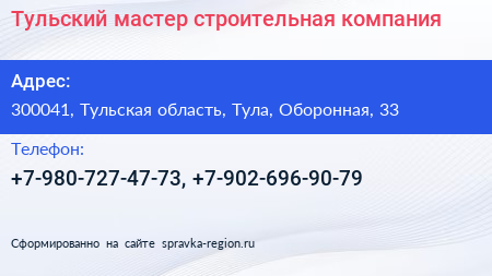 Тульский мастер, строительная компания по адресу 300041, Тульская область, Тула, Оборонная, 33 в дальнейшем Организация, размещена в следующих категориях: