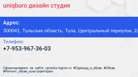 uniqburo, дизайн-студия по адресу 300041, Тульская область, Тула, Центральный переулок, 2а в дальнейшем Организация, размещена в следующих категориях: