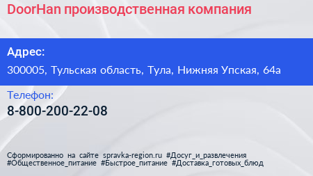 DoorHan, производственная компания по адресу 300005, Тульская область, Тула, Нижняя Упская, 64а в дальнейшем Организация, размещена в следующих категориях:
