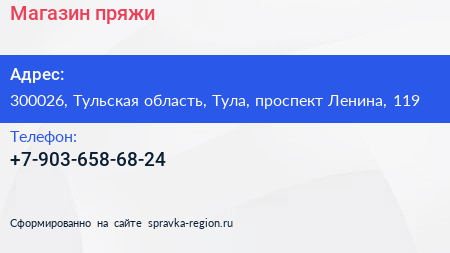 Магазин пряжи по адресу 300026, Тульская область, Тула, проспект Ленина, 119 в дальнейшем Организация, размещена в следующих категориях: