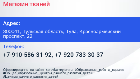 Магазин тканей по адресу 300041, Тульская область, Тула, Красноармейский проспект, 22 в дальнейшем Организация, размещена в следующих категориях: