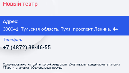 Новый театр по адресу 300041, Тульская область, Тула, проспект Ленина, 44 в дальнейшем Организация, размещена в следующих категориях: