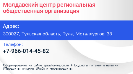 Молдавский центр, региональная общественная организация по адресу 300027, Тульская область, Тула, Металлургов, 38 в дальнейшем Организация, размещена в следующих категориях: