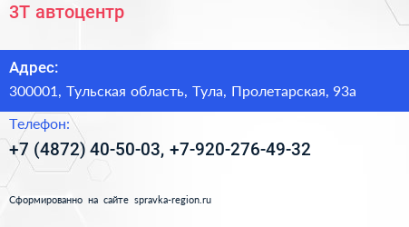 3Т, автоцентр по адресу 300001, Тульская область, Тула, Пролетарская, 93а в дальнейшем Организация, размещена в следующих категориях: