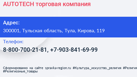 AUTOTECH, торговая компания по адресу 300001, Тульская область, Тула, Кирова, 119 в дальнейшем Организация, размещена в следующих категориях: