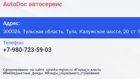 AutoDoc, автосервис по адресу 300026, Тульская область, Тула, Калужское шоссе, 20 ст 54 в дальнейшем Организация, размещена в следующих категориях: