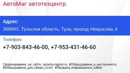 АвтоМаг, автотехцентр по адресу 300045, Тульская область, Тула, проезд Некрасова, 6 в дальнейшем Организация, размещена в следующих категориях: