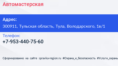 Автомастерская по адресу 300911, Тульская область, Тула, Володарского, 1в/1 в дальнейшем Организация, размещена в следующих категориях: