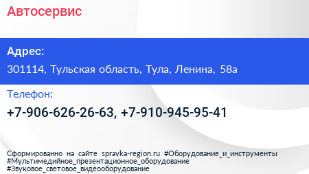 Автосервис по адресу 301114, Тульская область, Тула, Ленина, 58а в дальнейшем Организация, размещена в следующих категориях:
