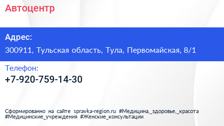 Автоцентр по адресу 300911, Тульская область, Тула, Первомайская, 8/1 в дальнейшем Организация, размещена в следующих категориях:
