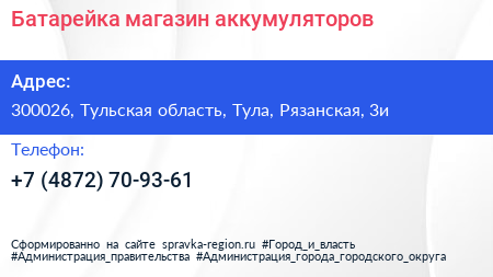Батарейка, магазин аккумуляторов по адресу 300026, Тульская область, Тула, Рязанская, 3и в дальнейшем Организация, размещена в следующих категориях: