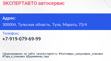ЭКСПЕРТАВТО, автосервис по адресу 300004, Тульская область, Тула, Марата, 73/4 в дальнейшем Организация, размещена в следующих категориях: