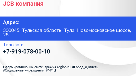 JCB, компания по адресу 300045, Тульская область, Тула, Новомосковское шоссе, 28 в дальнейшем Организация, размещена в следующих категориях: