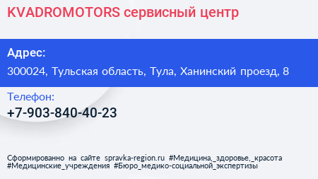 KVADROMOTORS, сервисный центр по адресу 300024, Тульская область, Тула, Ханинский проезд, 8 в дальнейшем Организация, размещена в следующих категориях: