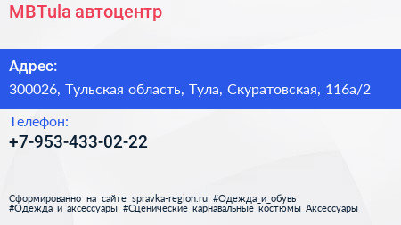 MBTula, автоцентр по адресу 300026, Тульская область, Тула, Скуратовская, 116а/2 в дальнейшем Организация, размещена в следующих категориях: