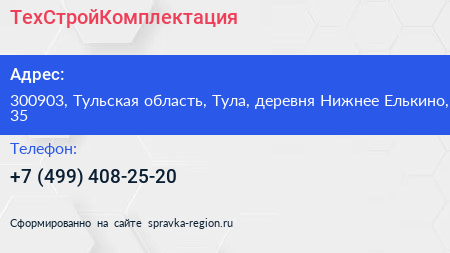 ТехСтройКомплектация по адресу 300903, Тульская область, Тула, деревня Нижнее Елькино, 35 в дальнейшем Организация, размещена в следующих категориях: