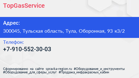 TopGasService по адресу 300045, Тульская область, Тула, Оборонная, 93 к3/2 в дальнейшем Организация, размещена в следующих категориях: