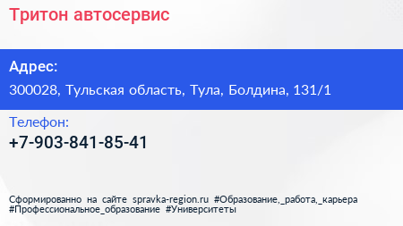 Тритон, автосервис по адресу 300028, Тульская область, Тула, Болдина, 131/1 в дальнейшем Организация, размещена в следующих категориях: