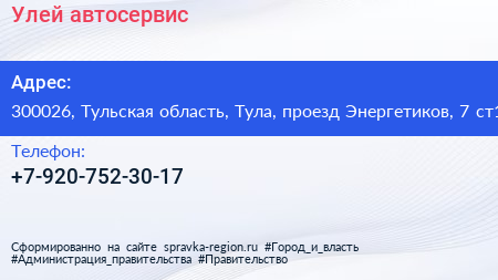Улей, автосервис по адресу 300026, Тульская область, Тула, проезд Энергетиков, 7 ст1 в дальнейшем Организация, размещена в следующих категориях: