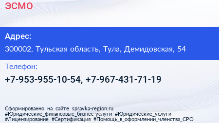 ЭСМО по адресу 300002, Тульская область, Тула, Демидовская, 54 в дальнейшем Организация, размещена в следующих категориях: