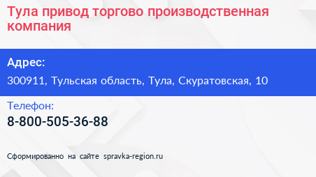 Тула-привод, торгово-производственная компания по адресу 300911, Тульская область, Тула, Скуратовская, 10 в дальнейшем Организация, размещена в следующих категориях: