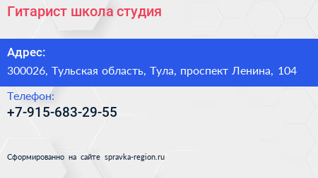 Гитарист, школа-студия по адресу 300026, Тульская область, Тула, проспект Ленина, 104 в дальнейшем Организация, размещена в следующих категориях:
