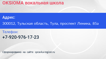OKSIOMA, вокальная школа по адресу 300012, Тульская область, Тула, проспект Ленина, 85а в дальнейшем Организация, размещена в следующих категориях: