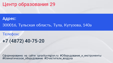 Центр образования №29 по адресу 300016, Тульская область, Тула, Кутузова, 140а в дальнейшем Организация, размещена в следующих категориях: