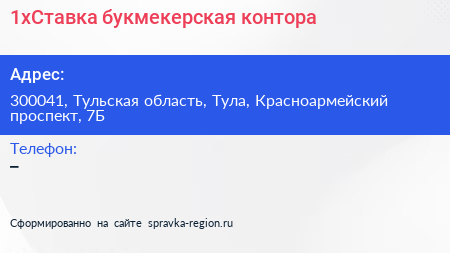 1xСтавка, букмекерская контора по адресу 300041, Тульская область, Тула, Красноармейский проспект, 7Б в дальнейшем Организация, размещена в следующих категориях: