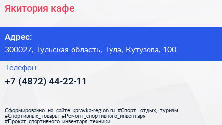 Якитория, кафе по адресу 300027, Тульская область, Тула, Кутузова, 100 в дальнейшем Организация, размещена в следующих категориях: