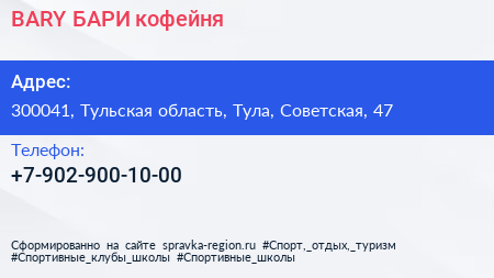 BARY | БАРИ, кофейня по адресу 300041, Тульская область, Тула, Советская, 47 в дальнейшем Организация, размещена в следующих категориях: