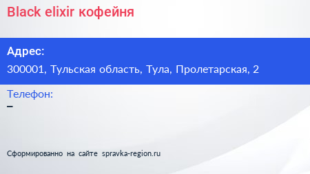Black elixir, кофейня по адресу 300001, Тульская область, Тула, Пролетарская, 2 в дальнейшем Организация, размещена в следующих категориях: