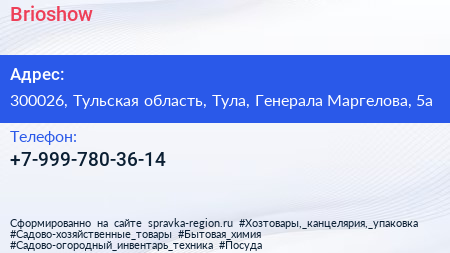 Brioshow по адресу 300026, Тульская область, Тула, Генерала Маргелова, 5а в дальнейшем Организация, размещена в следующих категориях:
