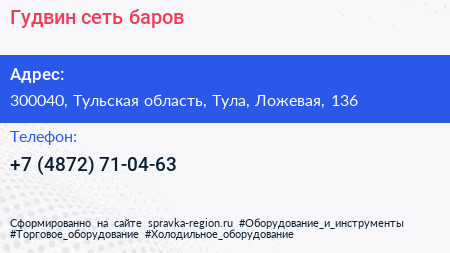 Гудвин, сеть баров по адресу 300040, Тульская область, Тула, Ложевая, 136 в дальнейшем Организация, размещена в следующих категориях:
