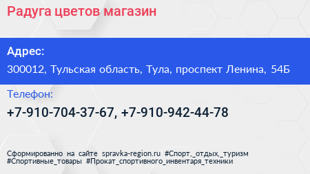 Радуга цветов, магазин по адресу 300012, Тульская область, Тула, проспект Ленина, 54Б в дальнейшем Организация, размещена в следующих категориях: