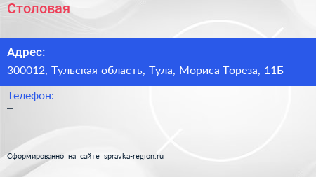 Столовая по адресу 300012, Тульская область, Тула, Мориса Тореза, 11Б в дальнейшем Организация, размещена в следующих категориях: