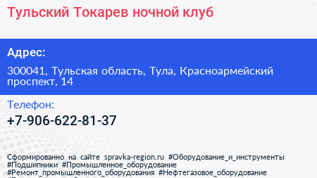 Тульский Токарев, ночной клуб по адресу 300041, Тульская область, Тула, Красноармейский проспект, 14 в дальнейшем Организация, размещена в следующих категориях: