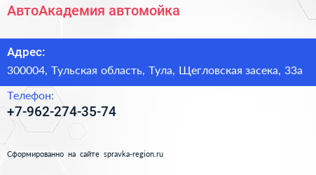 АвтоАкадемия, автомойка по адресу 300004, Тульская область, Тула, Щегловская засека, 33а в дальнейшем Организация, размещена в следующих категориях: