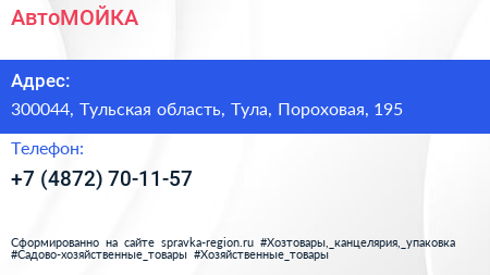 АвтоМОЙКА по адресу 300044, Тульская область, Тула, Пороховая, 195 в дальнейшем Организация, размещена в следующих категориях: