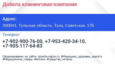 Добела, клининговая компания по адресу 300041, Тульская область, Тула, Советская, 17Б в дальнейшем Организация, размещена в следующих категориях: