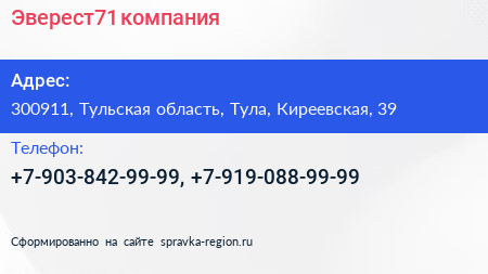 Эверест71, компания по адресу 300911, Тульская область, Тула, Киреевская, 39 в дальнейшем Организация, размещена в следующих категориях:
