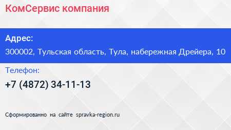 КомСервис, компания по адресу 300002, Тульская область, Тула, набережная Дрейера, 10 в дальнейшем Организация, размещена в следующих категориях: