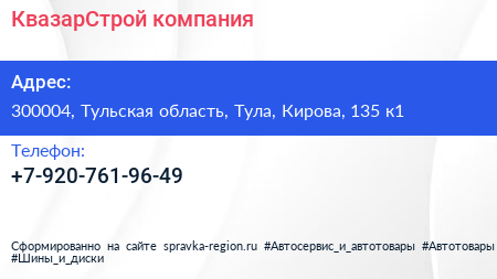 КвазарСтрой, компания по адресу 300004, Тульская область, Тула, Кирова, 135 к1 в дальнейшем Организация, размещена в следующих категориях: