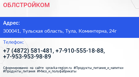 ОБЛСТРОЙКОМ по адресу 300041, Тульская область, Тула, Коминтерна, 24г в дальнейшем Организация, размещена в следующих категориях: