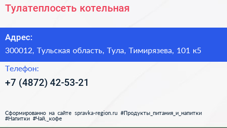 Тулатеплосеть, котельная по адресу 300012, Тульская область, Тула, Тимирязева, 101 к5 в дальнейшем Организация, размещена в следующих категориях: