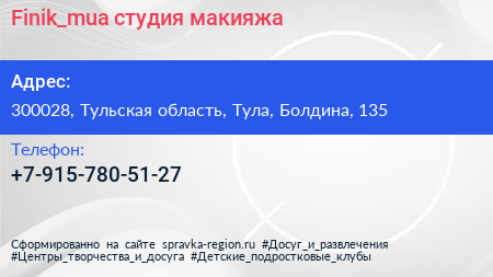 Finik_mua, студия макияжа по адресу 300028, Тульская область, Тула, Болдина, 135 в дальнейшем Организация, размещена в следующих категориях: