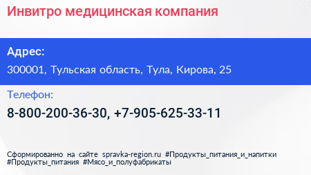 Инвитро, медицинская компания по адресу 300001, Тульская область, Тула, Кирова, 25 в дальнейшем Организация, размещена в следующих категориях: