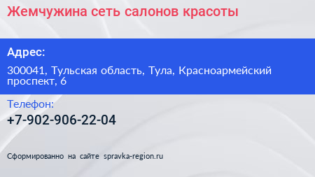 Жемчужина, сеть салонов красоты по адресу 300041, Тульская область, Тула, Красноармейский проспект, 6 в дальнейшем Организация, размещена в следующих категориях: